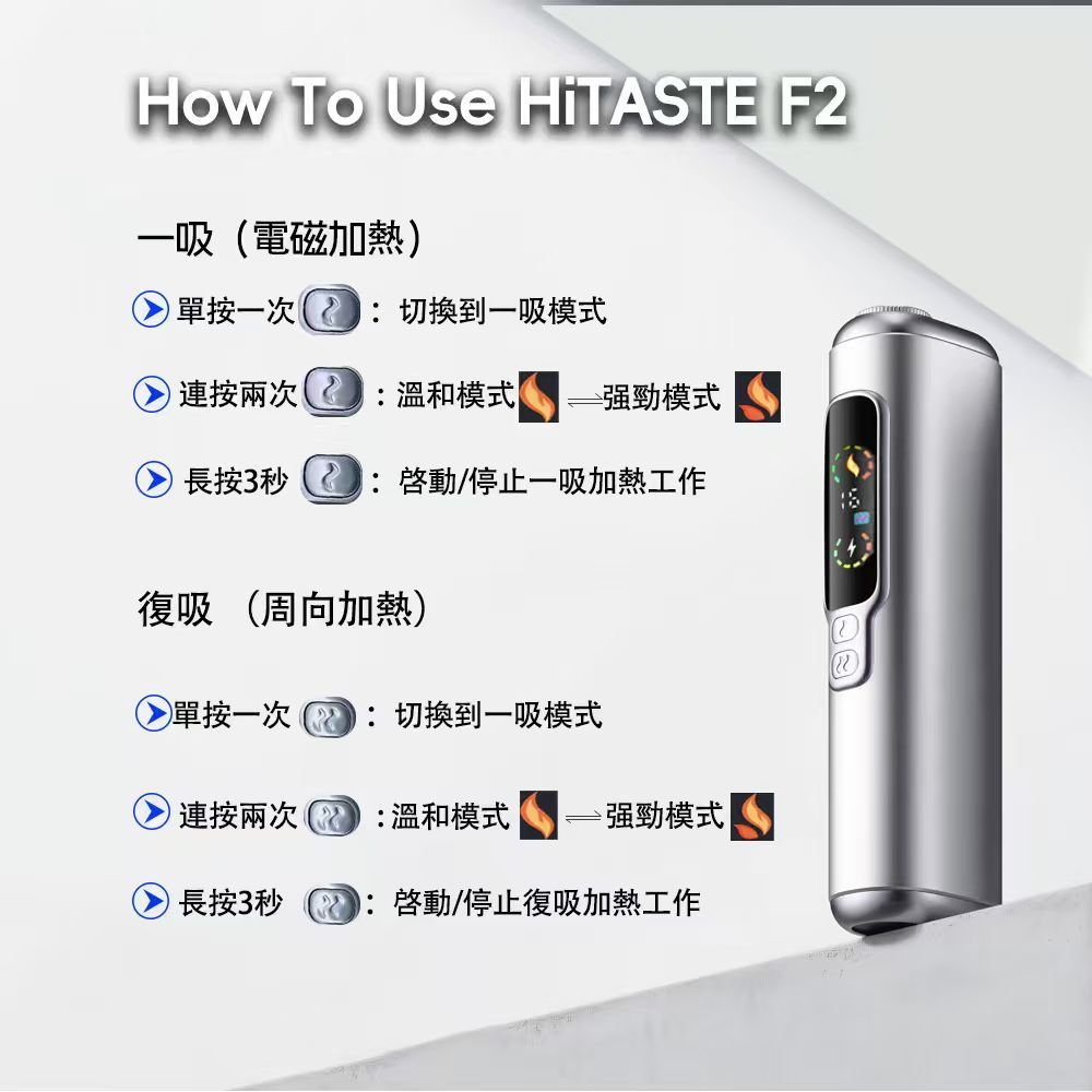 HITASTE F2 最大的創新在於提供了兩種獨立的加熱模式,讓您可以根據煙彈類型和個人喜好進行切換: